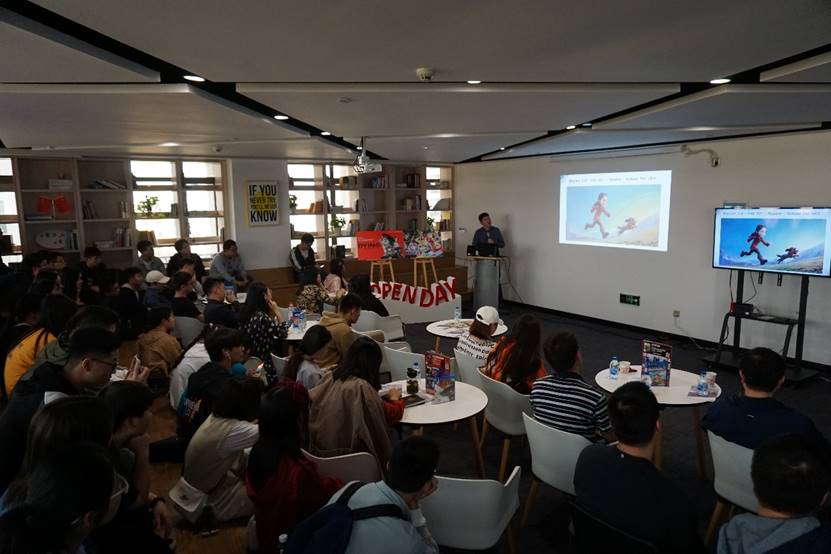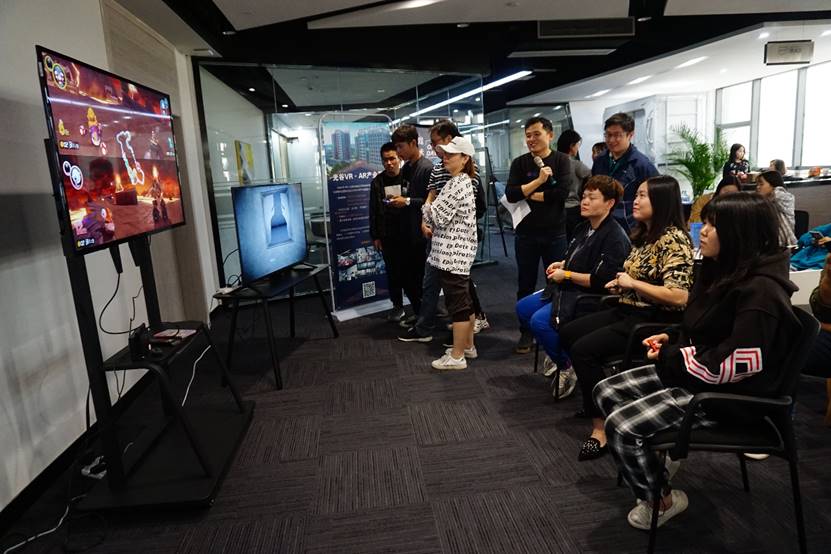沙龙活动分两个部分:首先由铃空游戏技术总监Lao Gao分享讲座《科技·艺术·你》。生动幽默的演讲让学生找到了“如何成为主机游戏开发者”这个问题的答案,Lao Gao从基础、艺术和技术三个方面,深入浅出地为同学们分享了实用方法,着重解释了主机游戏的步骤理念和近期新软件,生动展现了游戏的科技魅力。第二个部分,VR·AR产业基地准备了游戏体验环节,更直观地感受主机游戏的魅力,包括经典NS《马里奥赛车8》组团比赛。整个活动现场气氛热烈,同学们表现出了强烈的求知欲和良好的职业素养,与企业、行业专家积极沟通交流。